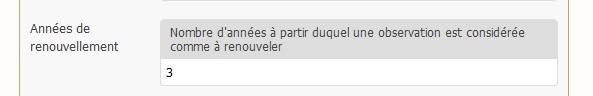 La valeur saisie ici servira de valeur par défaut pour la recherche des observations à renouveler.