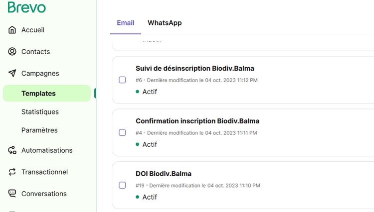 Pour utiliser Sibmail, vous devrez renseigner ces différents templates et noter leur numéro Brevo : ces numéros seront nécessaires à la confirguration de Sibmail et Sibactu.