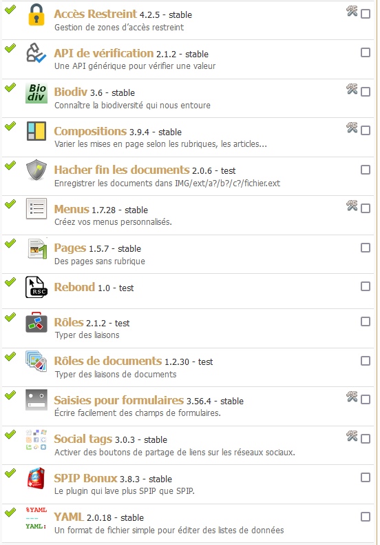 Pour 3.9, et à partir de 4.0, l’introduction de SPIP 4.x fait évoluer la liste des plugins nécessaires, qui est présentée ci-dessous.