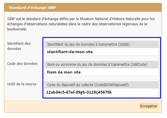 Le standard d’échange SINP permet aux organisations participant à l’observatoire de la biodiversité d’échanger des données entre elles. Ce standard est notamment utilisé pour extraire des informations de la base du site et les transmettre à l’observatoire régional de la biodiversité.