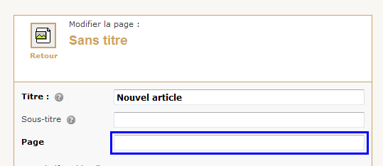 Quand on les édite, un champ particulier doit être renseigné : le champ Page.