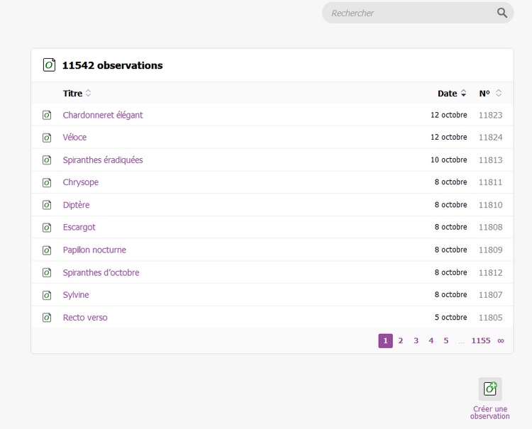 Par ce menu, on accède à la liste des observations.