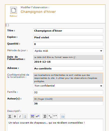 Déposer et modifier une observation est normalement une prérogative de l’observateur. Néanmoins, plusieurs situations peuvent justifier une modification par l’administrateur :